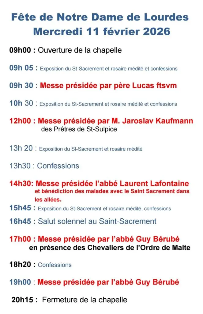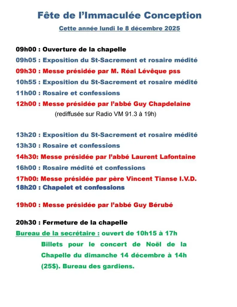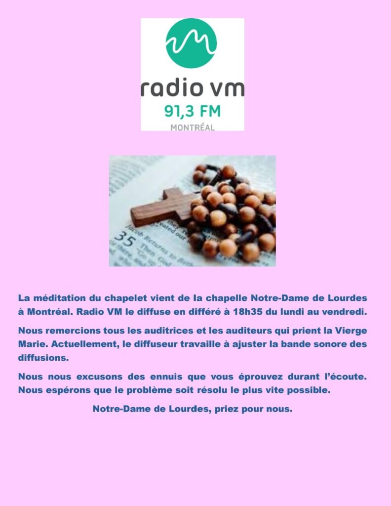 - Chapelet a 11h20 (radio diffusé sur radio VM 91,3 à 18h30) et 16h15